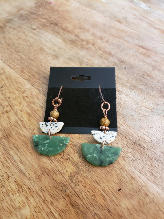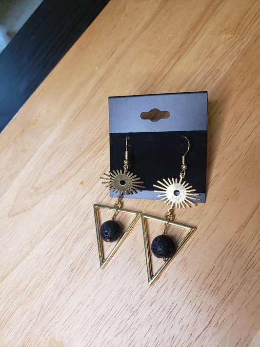 High Vibrations Essential Oil Diffuser Lava Stone Earrings with Geometric Evil Eye Charm