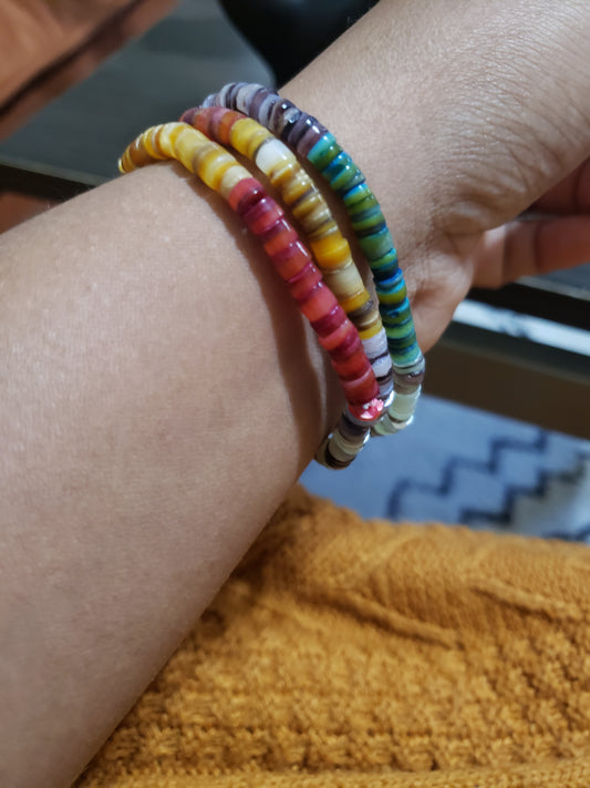 Multicolored Dyed Shell Heishi Bead Single Bracelet