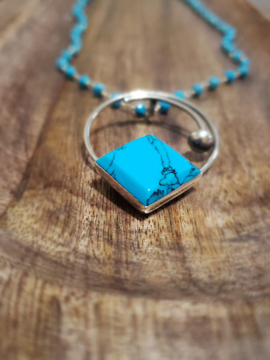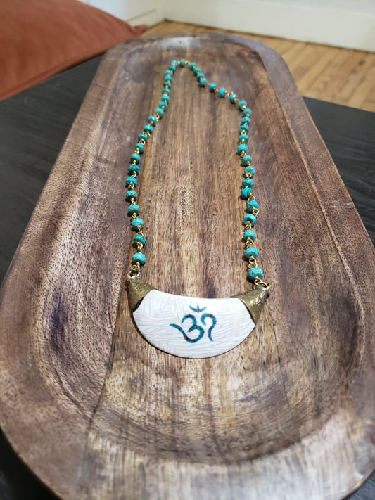 Tibetan Om Pendant Necklace with Turquoise Beads